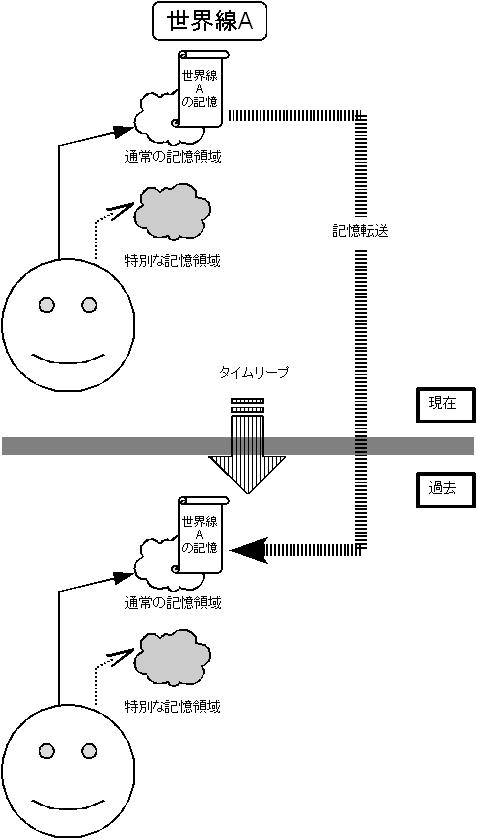 以上のように、タイムリープと世界線移動は、単一観測者間の記憶転送か、特定の観測者を除く周囲の複数の観測者の記憶転送か、という転送先と規模の違いだけで、原理的には同じものと推測されます。