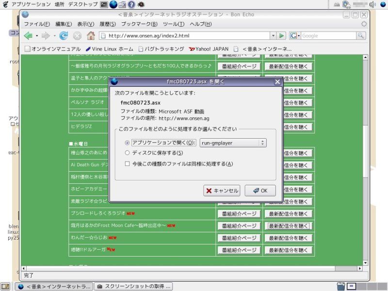 元々、MPlayerをインストールしようとし動機はインターネットラジオ音泉を聴くためだったので、がっくりしました。
